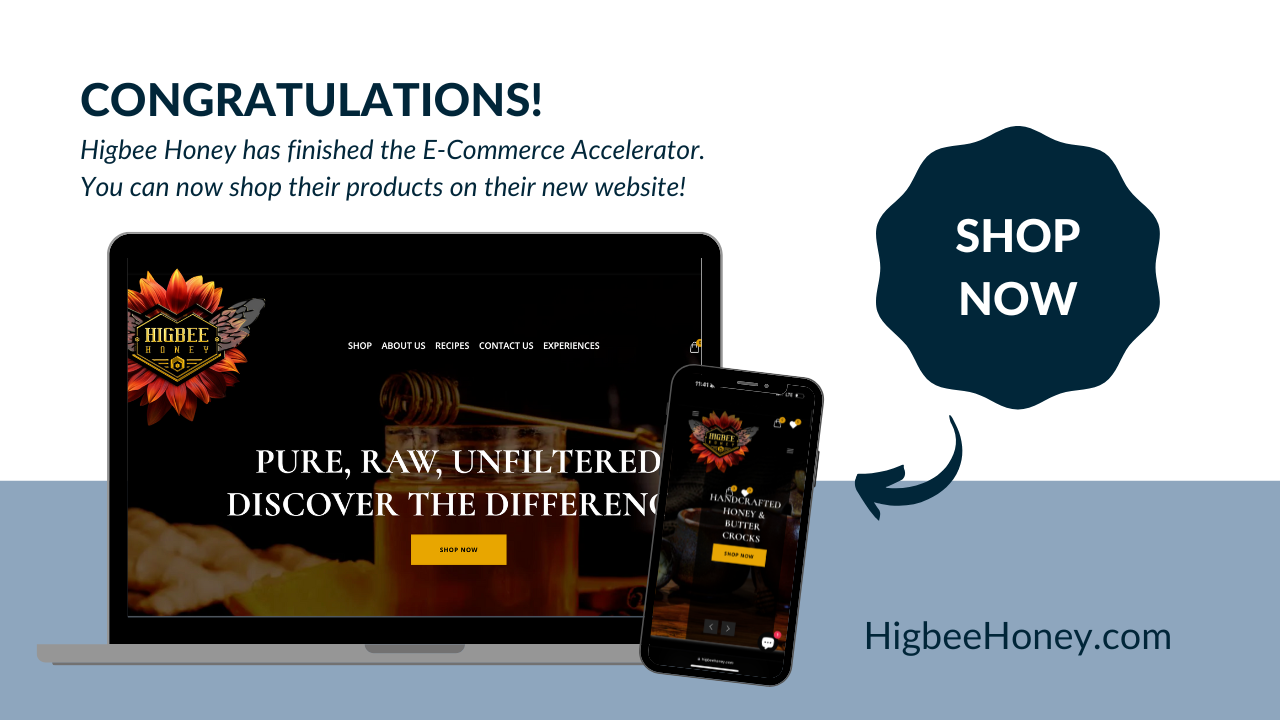 Higbee Honey just completed the 6-week E-Commerce Accelerator program and has launched their new website! They have increased visibility, web traffic, and sales. We invite you to shop for their honey, gift sets, and accessories on their new website.