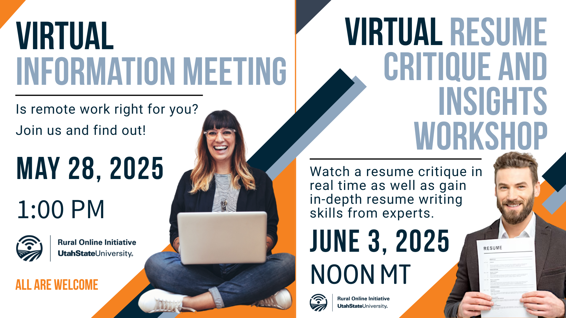 Join Utah State University Extension's Rural Online Initiative for two free, virtual events designed to help you explore remote work opportunities and improve your job search skills.