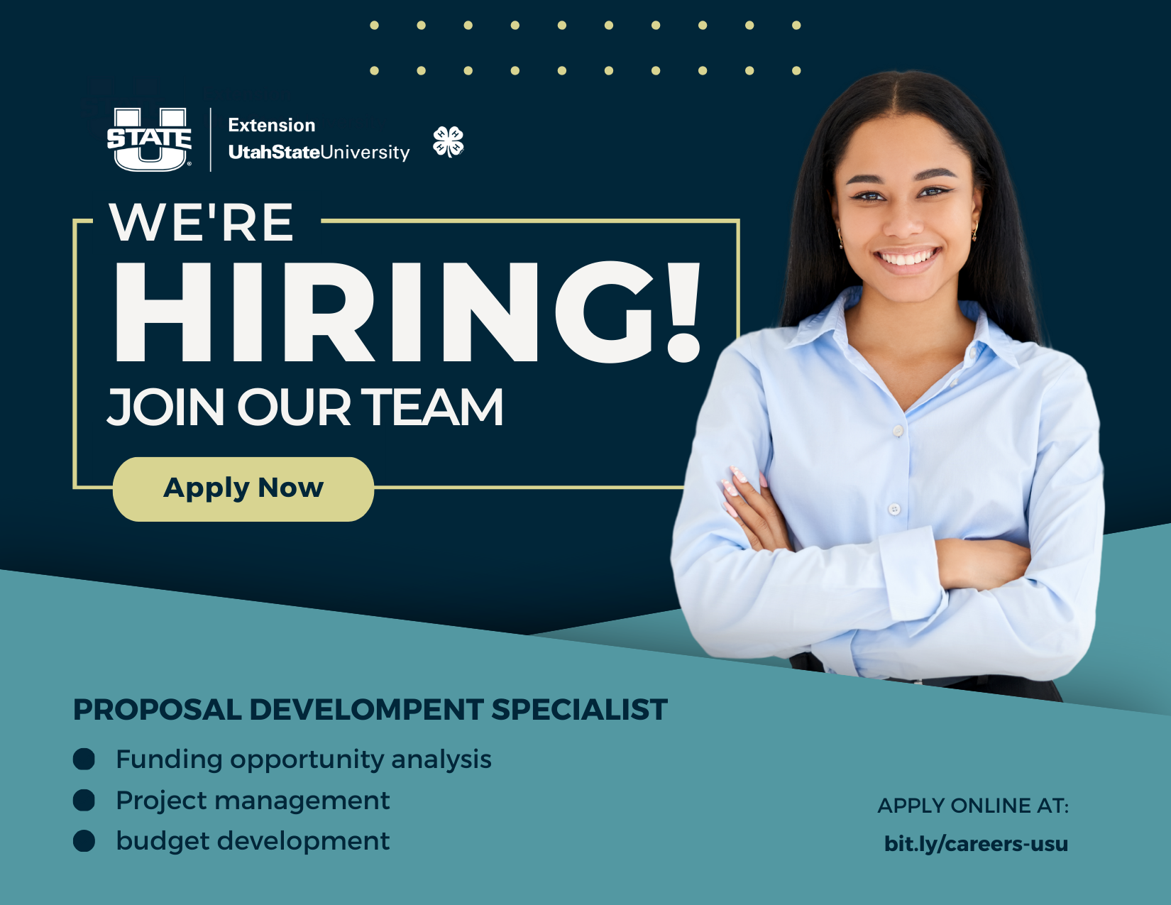 Utah State University Extension is looking for a talented Proposal Development Specialist to join our team! | |